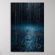 Poster de chuva abstrato - Arte de parede azul pra