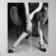 Poster de salão de safra preto e branco com unhas cor-de-rosa e brancas.