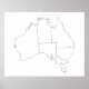 Mapa da Austrália com contornos vazios de estados em preto e branco para usar para fins educacionais, para manter o controle dos lugares que você viagem ou para qualquer outro fim. Anote os estados de etiqueta com suas próprias informações. Excelente para professores ou sala de aula.