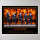 Vários policiais calmamente apocalípticos estão atrás deles e a palavra "Coragem" e uma definição da palavra abaixo.