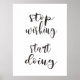 Escrito caprichoso personalizado "pare de querer começar a fazer" para uma bela e motivadora arte em muro