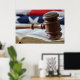 O juiz de Wooden está em uma bíblia. A bandeira americana.
