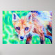 Este é um impressão de lápis colorido. Fui inspirado a desenhar desta raposa depois que vi uma bela foto de uma raposa de um fotógrafo local do meu estado em New Hampshire. Eu mostrei a ele o desenho e ele o ama. Eu adicionei cores que você normalmente não veria numa raposa porque eu acho que seria tão legal ver criaturas coloridas brilhantes neste mundo. Eu sou sobre cores!