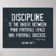 Este poster de futebol em negação azul rasgada e rasgada para malhação apresenta uma citação motivacional do designer e autor Felicity Luckey. Este impressão desportivo faz parte de uma coleção de 20 posters inspiradores com citações para jogadores de futebol, treinadores e motivação em equipe. Esta citação é também apresentada nas nossas cores da série de poster de futebol de denim e na nossa série de poster de futebol de grunge preto e branco. A citação de futebol sobre este poster motivacional diz: "Disciplina é a ponte entre seus objetivos de futebol e sucesso no futebol" ~ Felicity Luckey.
