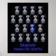 Esta engraçada poster de muro é uma maneira excelente de inspirar e encorajar tolerância e diversidade entre seus alunos. Tem muitos gatos sorridentes de desenho animado idênticos, todos em cinzas, e um gato azul. O poster diz, "A diversidade torna a vida colorida." Você pode mudar esta mensagem se quiser, no modelo. Clique no botão personalizar para alterar as cores da fonte ou do fundo. Este é um excelente para os professores encorajarem a diversidade cultural e pessoal na sala de aula. A design de poster bonitinha funciona bem para o elementar, o meio ou o segundo grau. As crianças recebem a mensagem do design simples e atraente.