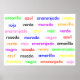 Esta é uma poster que demonstra o efeito Stroop em espanhol. Para experimentar o efeito, leia a COR em que cada palavra é impressa, não a palavra em si.