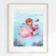 Adicione um toque de calor e suavidade ao seu pequeno berçário, quarto ou sala de brincadeira com esta adorável sereia montada na parte de trás de uma baleia rosa, suas caudas entrelaçadas enquanto caminham pelas profundezas do oceano, cercadas por peixes coloridos e corais vibrantes. Esta arte aquarela trará vida a qualquer quarto!