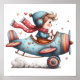 Esta ilustração caprichosa de uma criança que voa num avião antiquado fará do quarto do seu filho um de um tipo. Perfeito para berçário, sala de jogos ou quarto. Imagem assistida por IA adquirida com uso comercial. Trabalho de arte: RedHeronLighthouse