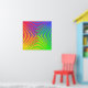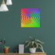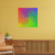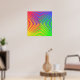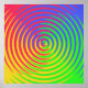 Aqui está um poster colorido com um padrão abstrato espiral do arco-íris girando em torno de um alvo central em cores verde, azul, amarela, laranja e vermelha.