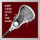 Poster de Lacrosse para jogadores de lax, com palito e design de bola em fundo de marrom.