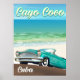 Cayo Coco, poster de viagens vintage cubana de um automóvel retrorclássico.