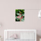 Poster com fotografia de uma flor roxa rosa com folhas de foca