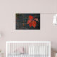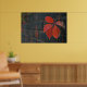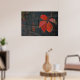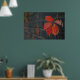 Poster mostrando folhas vermelhas com a parede escura como fundo