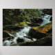 Coloque-se no pé de uma queda d'água profunda no início do outono com esta bela imagem. Um riacho montanhoso se cascata sobre pedras cobertas de musgo, pintado com as cores das folhas do outono.