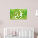 Poster de caligrafia de Alá, belíssima e moderna, com folhas verdes e rastros leves