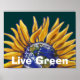 O poster de Arte da Terra de Girassol mostra nossa pintura original de um girassol com o planeta Terra no centro pintado digitalmente por Traci Van Wagoner, com as palavras personalizáveis, Live Green. Nossa obra de arte original é uma bela maneira de ajudar a criar a consciência de que nosso planeta é uma mercadoria precioso. Viva verde, fique verde, e pegue esta poster para todos que amam nossa mãe terra, flores, girassóis e conservação. Plante uma flor, abraça uma árvore, compre com nosso saco original de compras na Terra, e reciclar, reuso e conservação. Pare de usar essas bolsas plásticas e compre com estilo