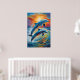 Estilo de pintura a óleo poster vertical HD de golfinhos saltando da água