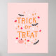 Torne a sua decoração de halloween muito fofa com este poster de "truque ou travessura" rosa. Decorado com faíscas para aquela sensação mágica da estação. Obtenha isto como um download instantâneo para decoração de festas assustadoras de última hora. Veja nossos produtos semelhantes e decore suas paredes com um conjunto!