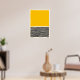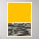 Abstrato arte com ilusão óptica com bloco amarelo arrojado, linhas onduladas pretas e borda bege.