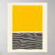 Abstrato arte com ilusão óptica com bloco amarelo arrojado, linhas onduladas pretas e borda bege.