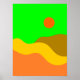 Este poster de na moda apresenta uma ilustração colorida e ousada de uma paisagem retrógrada de montanha