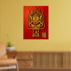 Ilustração do Dragão Chinês em Fundo Vermelho Auspetido com Poster de Caligrafia Chinesa