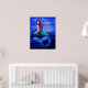 Numa rocha logo após o pôr do sol num oceano escuro, uma sereia olha para trás antes de começar o jantar de lagosta. Poster reproduzida a partir do acrílico original na pintura de fantasia canvas de Sue Halstenberg.