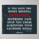 Um poster de lacrosse motivacional, sobre o denim azul rasgado, com letras vermelhas e brancas. (Este inspiracional impressão de lacrosse faz parte de uma série de 10 posters com citações de lacrosse neste design de denim.) A citação de lacrosse sobre este poster desportivo diz: "Se você tem a atitude mental certa, nada pode impedi-lo de atingir seus objetivos de lacrosse" ~ Felicity Luckey.