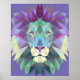 Esta poster apresenta uma cabeça de leão composta por formas geométricas.