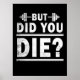 Mas você morreu? Este poster motivacional engraçado te encoraja a fazer melhor do que o seu melhor. Se você não está com vontade de morrer do seu exercício, você não trabalhou duro o suficiente! presente de excelente para qualquer ocasião, especialmente aqueles que estão na malhação e no ginásio.