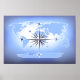 Poster de Mapa Mundial de Rosa de Compass Azul