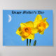 Feliz Dia de as mães Daffodils Dourado Flores Medalhadas com meio céu lua no céu