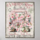 Rosas de chique Peguem o Poster de Mercado Flor no fundo de madeira de creme em apuros, Vintage Rosa Flower Market sign!