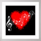 Poster é mostrado com um impressão de arte de notas de música em um impressão de forma cardíaca vermelha em uma cor preta de fundo. Personalize este item ou comprar como está. Imagem do stock