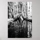 Contraste reflexivo - Uma fotografia a preto e branco de árvores curvas crescendo sobre um riacho estático com reflexos contrastados pesados na água © Alan Harman Fotografia 2022. Todos os direitos reservados. www.alanharmanphotography.com 220518 poster impressão