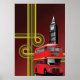Um grande ônibus de dois andares de Londres na cidade design. Esta design parece realmente eficaz nestes Poster