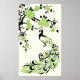 O pavão-verde limão preto e a cereja florescem um impressão de poster-personalizado, com uma silhueta de pavão e um galho de cereja - sakura - com lindas flores em fundo branco. Um design com um talento asiático oriental. Cores: Preto, verde, marfim.