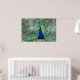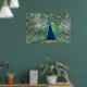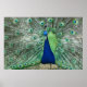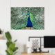 Um poster personalizável com uma fotografia de um Pavão macho com seu peito azul brilhante e um rabo de gato colorido