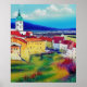Castelo Medieval com aldeia e natureza no fundo. A escolha perfeita para um presente ou decoração caseira. castelo, medieval, natureza, aldeia, tendências, castelo medieval e aldeia, vintage, pintura, poster medieval clássica