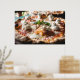 Poster mostrada com uma impressão fotográfica de uma pizza com aparência de excelente. Personalize este item ou comprar como está. Imagem do stock