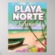 Playa Norte, poster de viagens mexicano com praia mexicana e barco de pesca.
