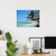 poster de praia tropical A PARTIR DAS 8h60. Você pode estar no paraíso a qualquer momento com esta foto da perfeita praia branca e arenosa tropical limpando a água azul, toda alinhada com coqueiros exuberantes. Foto fornecida por http://photoeverywhere.co.uk