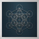 Este poster quadrado apresenta o Cubo de Metatron em prata luminosa contra fundo marinho profundo. Um poderoso símbolo de geometria sagrada, o Cubo de Metatron representa proteção, harmonia e a estrutura da criação. As linhas prateadas brilham com clareza sobre o rico marinho, criando um contraste ousado e elegante. Perfeito para espaços de meditação, salas de yoga, ou como sotaque geométrico surpreendente em sua decoração doméstica, esta peça combina simbolismo de eterno com sofisticação moderna.