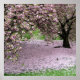poster de primavera de cereja florida a partir de 8,99. Lindas árvores cerejeiras floridas na primavera, colocaram um tapete rosa de pétalas de flor mole contra a grama verde fresca. As ramificações das cerejeiras são pesadas com a flor e você pode quase cheirar o cheiro bonito dessa poster de cereja florescente
