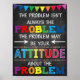 O PROBLEMA NEM SEMPRE É O PROBLEMA, O PROBLEMA PODE SER A SUA ATITUDE SOBRE O PROBLEMA! Faça com que os estudantes/clientes pensem com esta poster de tipografia falsa e atenciosa. Um na moda e excelente de sala de aula/poster de terapeutas para desafiar os alunos a mudarem de mentalidade = mudança de comportamento! Um poster excelente para pendurar numa escola secundária ou na sala de segundo grau. Também uma excelente poster para consultorias de orientação escolar, diretoria, terapeutas ou psicólogos para lembrar crianças e adolescentes que é tudo sobre perspectiva e que eles têm agora a capacidade de mudar sua própria vida mudando sua atitude!