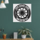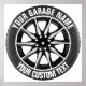 Proprietário de reparo de garagem ou carro com uma roda e pneu em preto, cromo e prata, com texto personalizado curvo, excelente para promoção comercial ou como presente para seu cliente