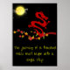 Proverbo poster chinês, "A jornada de mil milhas deve começar com um passo solteiro". Dragão em chamas. Isto pareceria excelente em qualquer quarto.