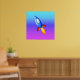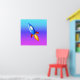 Um incrível foguete retrô contra um fundo multicolorido.