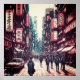 Rua Tóquio - Estilo ciberpunk japonês, pintura aquosa, retrato, vintage, textura rústica, distante, cores desbotadas, arte de linha, estilo de gravação, dinâmica, altamente detalhada, ilustração de arte conceitual.