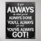 SE VOCÊ SEMPRE FAZER O QUE SEMPRE FEZ - VOCÊ SEMPRE OBTERÁ O QUE SEMPRE TEM UM Poster excelente PARA usar numa sala de segundo grau ou de ensino médio! Este poster é um excelente para usar para a arte atraente e funcional no ensino médio, segundo grau e até nas salas de aula universitárias! Excelente de lembrar os alunos de, às vezes, mudar sua perspectiva e abordar as coisas de um ângulo diferente para produzir resultados diferentes.